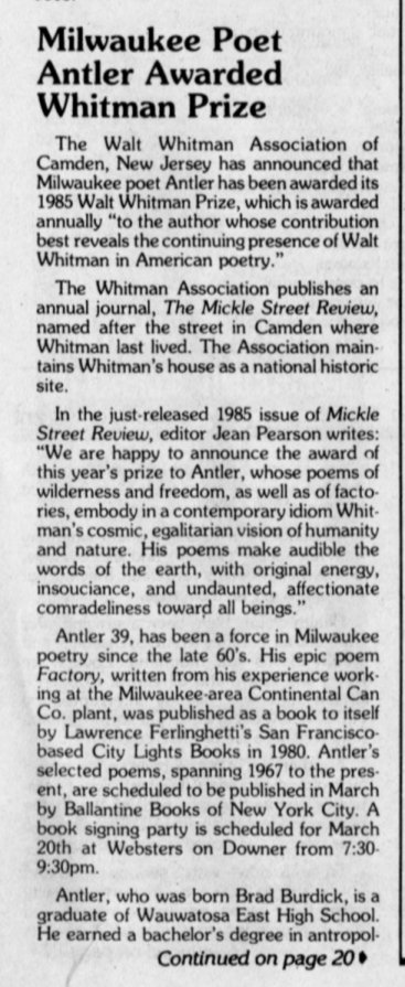 Poet, Antler, wins award