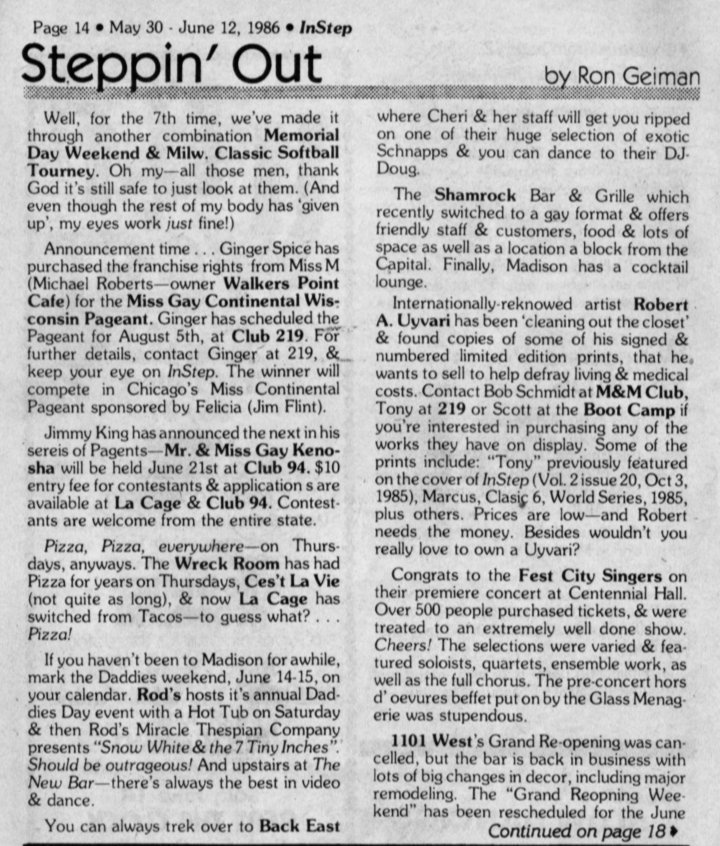 Ginger Spice purchases rights for Miss Gay Continental Pageant from Michael Roberts, owner of Walker Point Cafe;