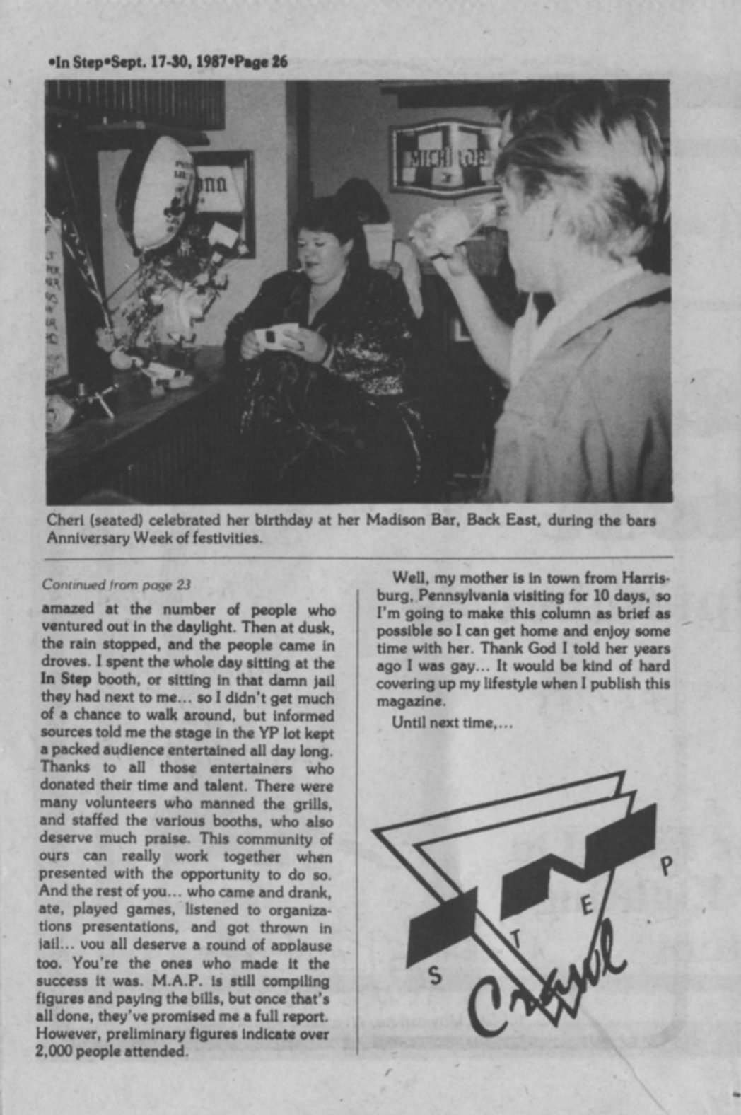 Steppin Out continued: results of MAP Fest swarming with people; + Photo: Cheri celebrating birthday at her Back East bar during anniversary