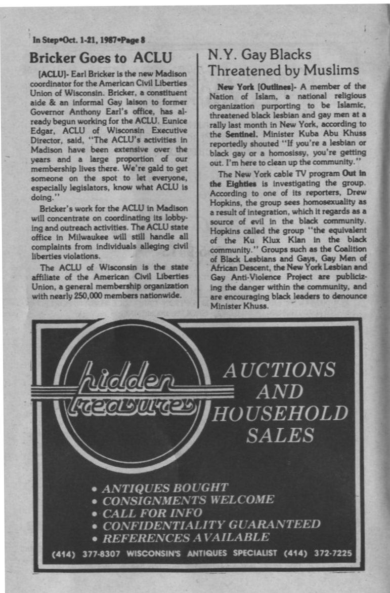 Earl Bricker new Madison coordinator for American Civil Liberties Union of Wisconsin + Ad: Hidden Treasures antiques specialist