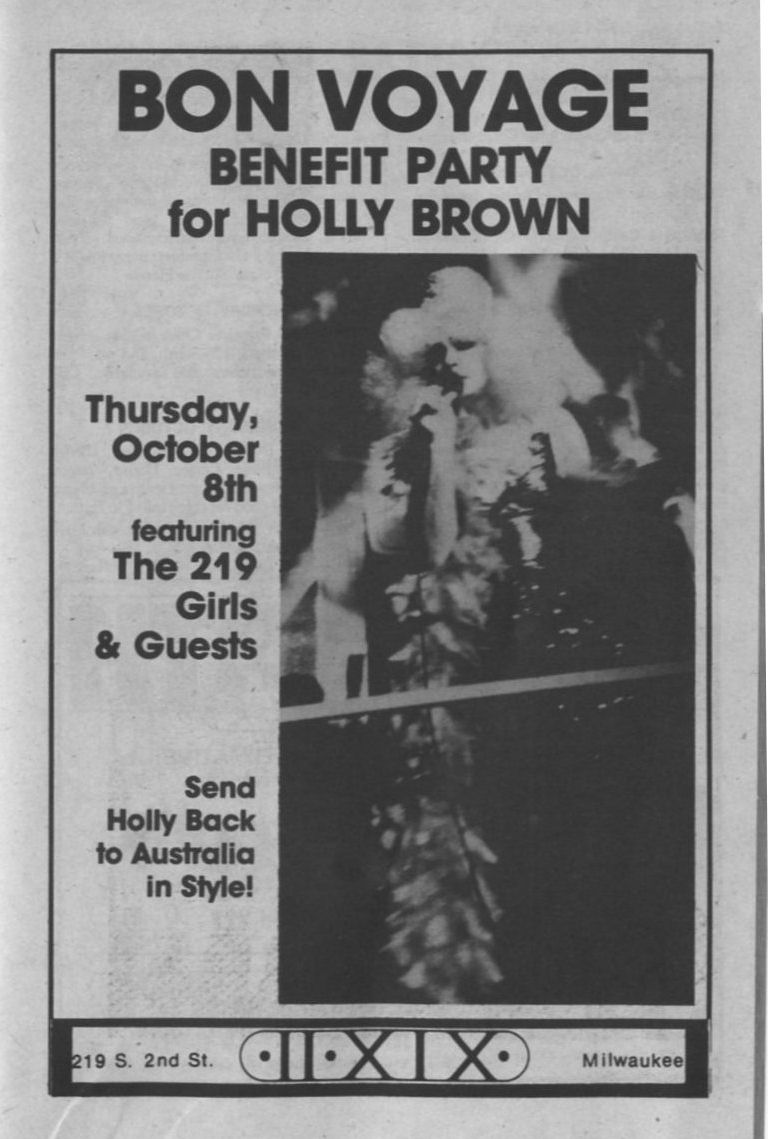 Ad: Club 219's Bon Voyage party for Holly Brown