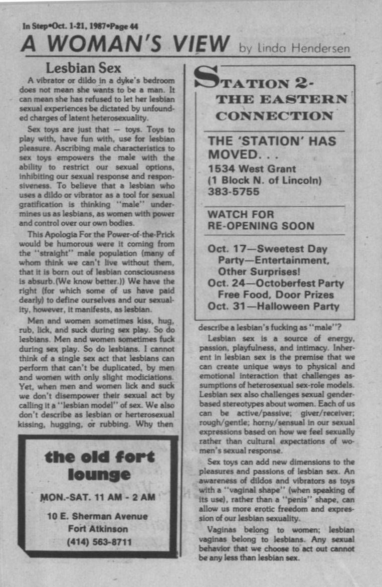 Column, A Woman's View; + Ad: Station 2, the Eastern Connection