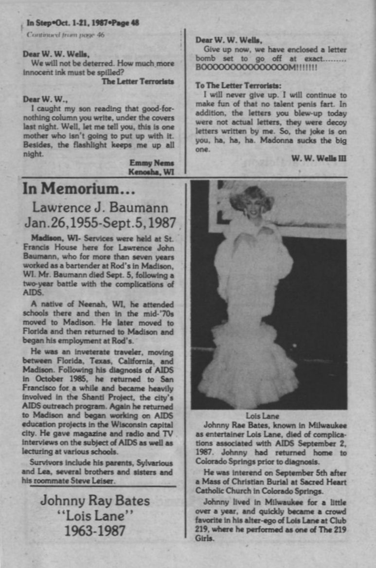 In Memorium: Lawrence J. Baumann (Rod's bartender), & Johnny Ray Bates (drag entertainer Lois Lane)