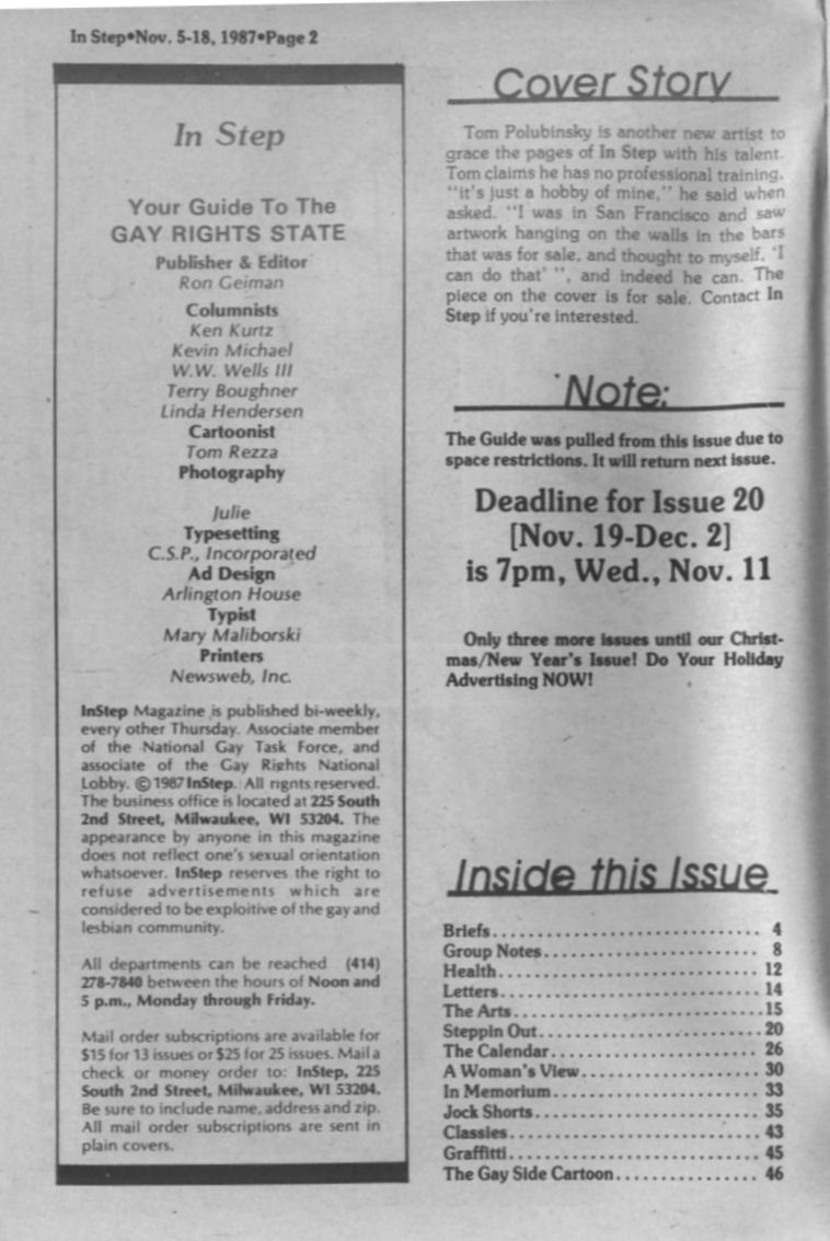 Credits: All cover images and text from In Step copyrighted; Thanks to William Attewell for permissions to reproduce select items. Page design and format by Don Schwamb. Last updated: April-2009.