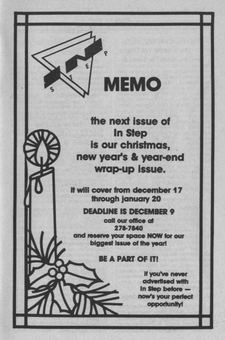 Credits: All cover images and text from In Step copyrighted; Thanks to William Attewell for permissions to reproduce select items. Page design and format by Don Schwamb. Last updated: April-2009.
