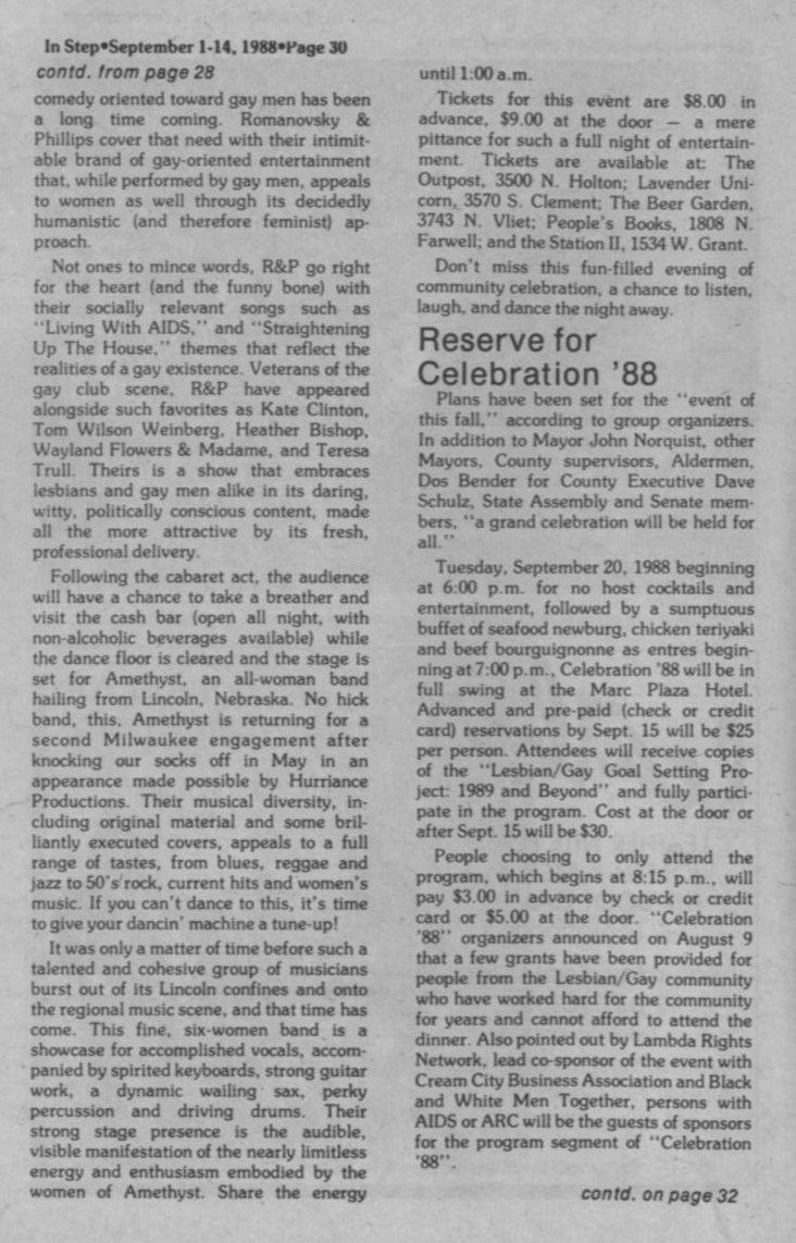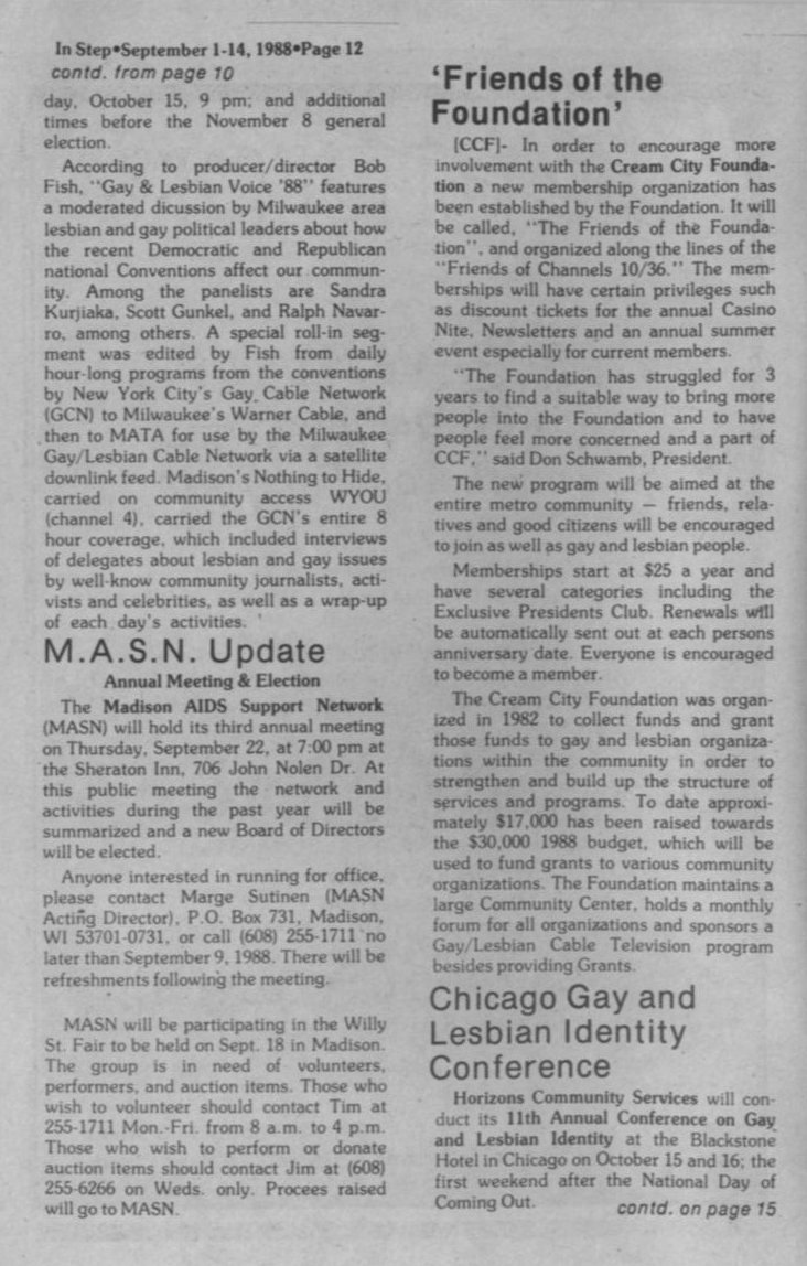 History of Gay and Lesbian Life in Milwaukee, Wisconsin - Print Media - InStep Magazine