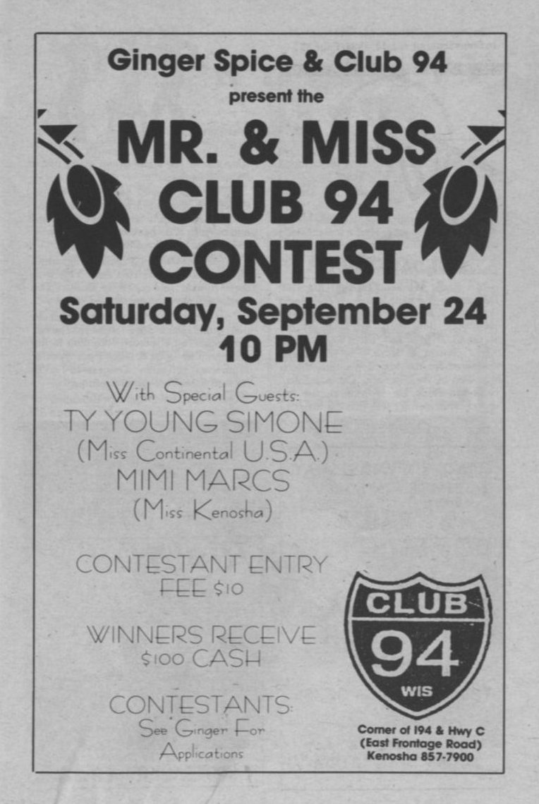 Ad: Club 94, Kenosha, Mr. & Miss Club 94 Contest