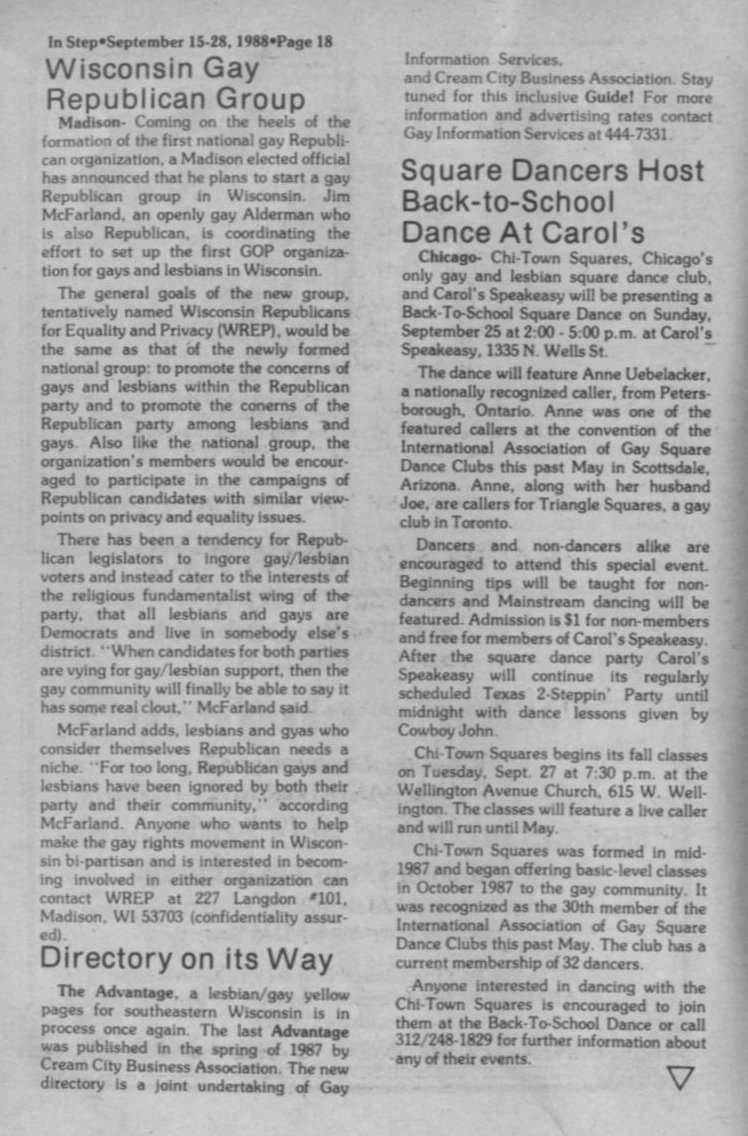 Wisconsin Gay Republican group; Directory; Square Dancers at Carol's