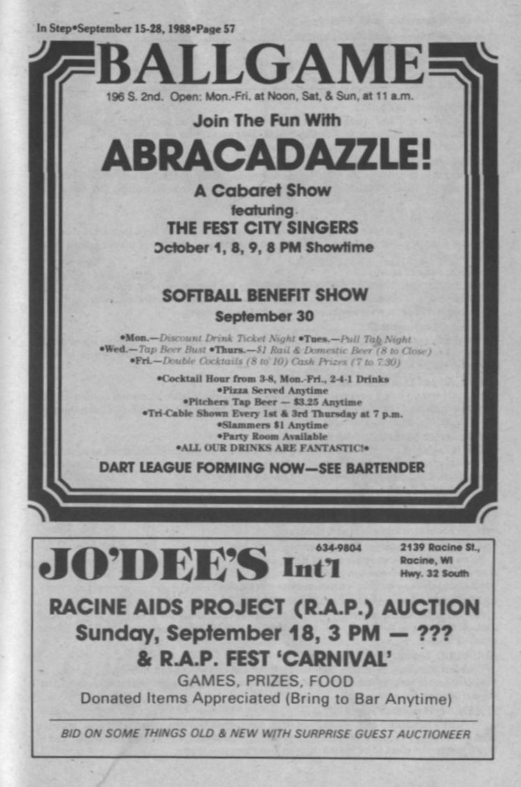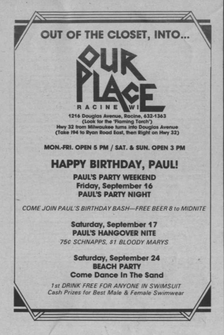 Ad: Our Place bar, Racine