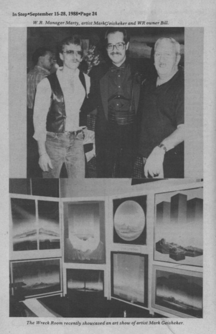 Photos: Art show at Wreck Room (included in top photo: WR manager Marty, and WR owner Bill)
