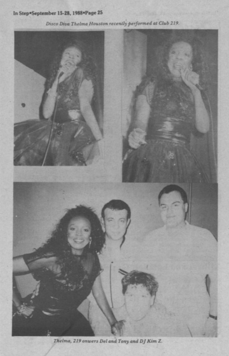Photos: Thelma Houston performing at Club 219 (in lower photo: 219 owners Del and Tony, and DJ Kim Z.)