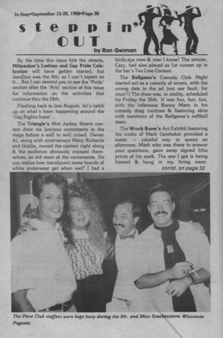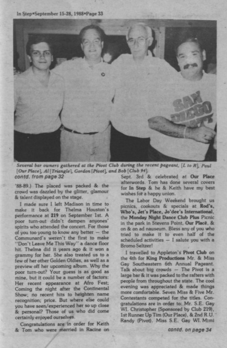 Steppin' out, cont: + Photo: bar owners Paul (Our Place), Al (Triangle), Gordon (Pivot), and Bob (Club 94).