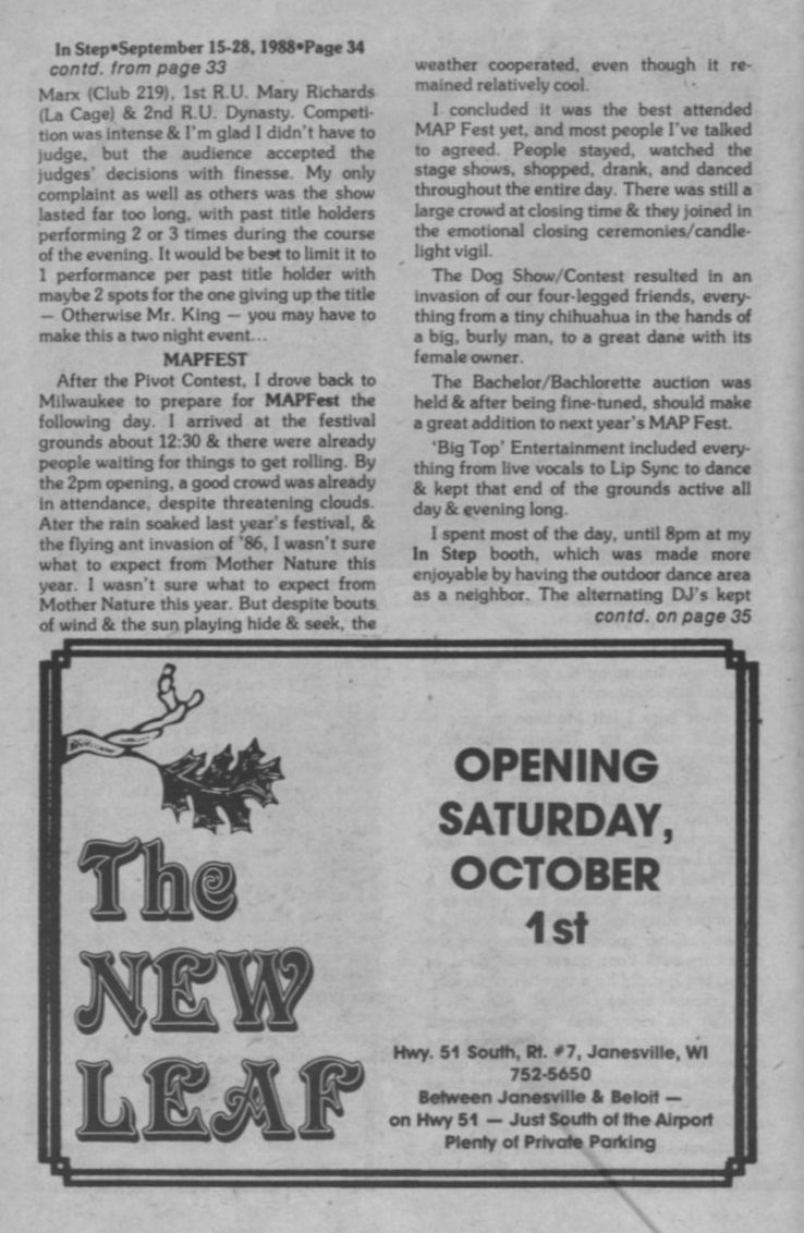 Steppin' out, cont: MAP Fest + Ad: The New Leaf opening, October 1st
