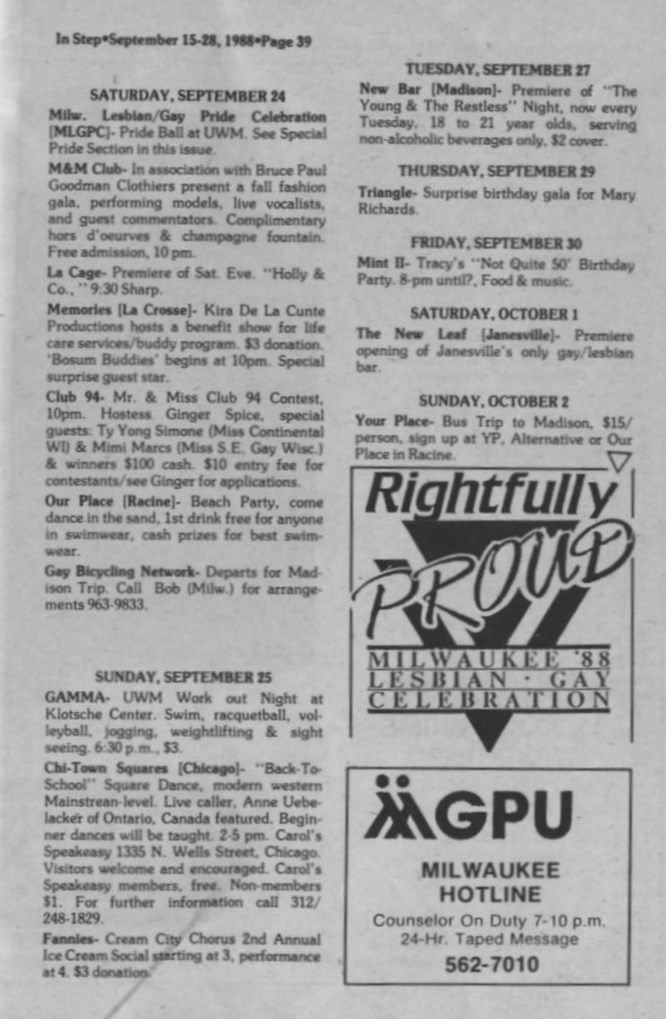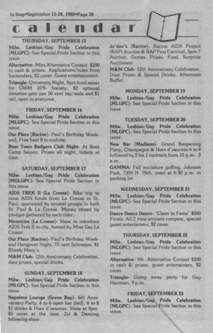 Pride schedule, continued