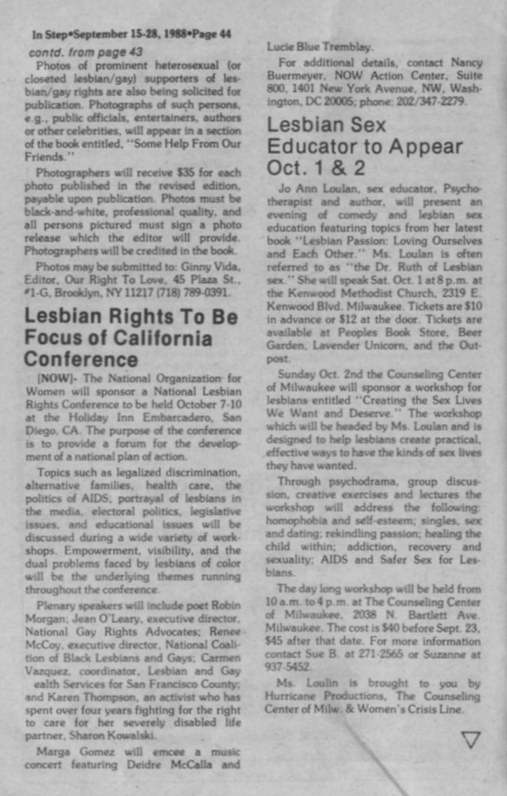'Awakening Pride' Poem written for ML/GPC Pride celebration, 1988, by Peggy Fernandez