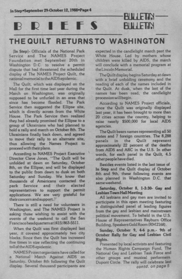 Briefs: NAMES Project quilt returns to Washington