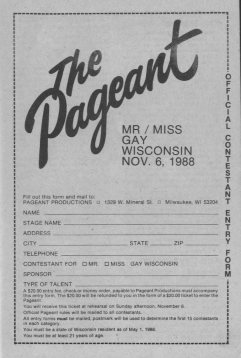 Ad; The Pageant application form