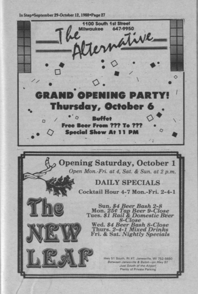 Ad: Opening of The Alternative + Ad: Opening of The New Leaf (Janesville)