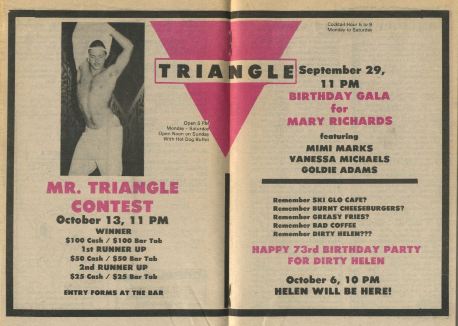Ad: Triangle, Mr. Triangle contest, and birthday gala for Mary Richards