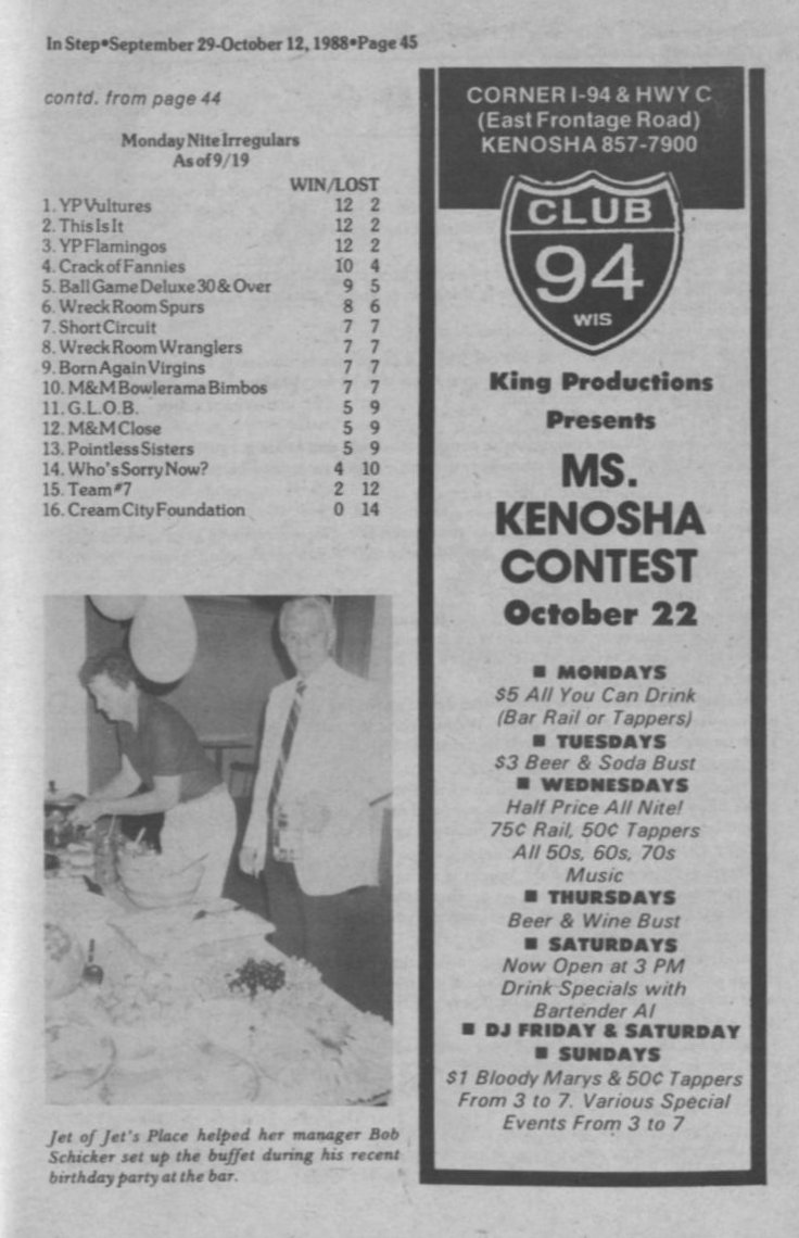 Jock Shorts, cont. + Photo: Manager Bob Schicker's birthday at Jet's Place bar