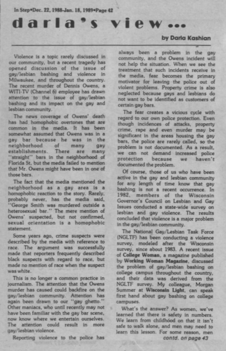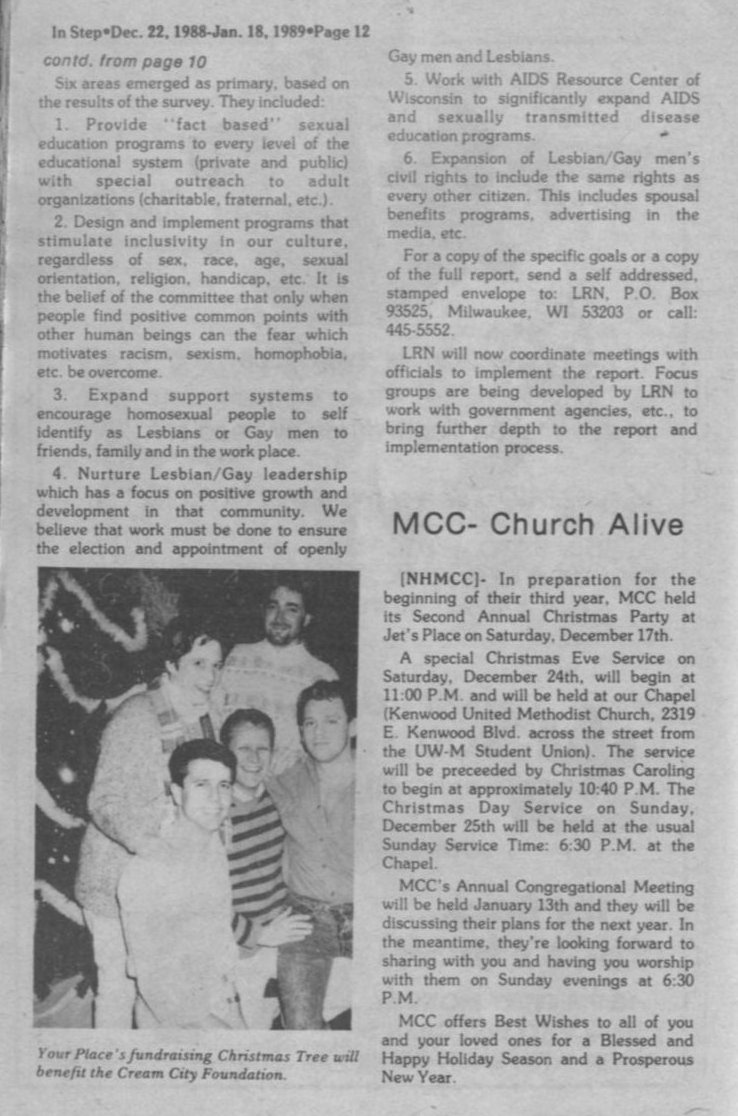Group Notes: Changes for Milwaukee Dignity;