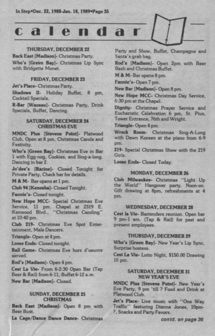 Calendar, continued