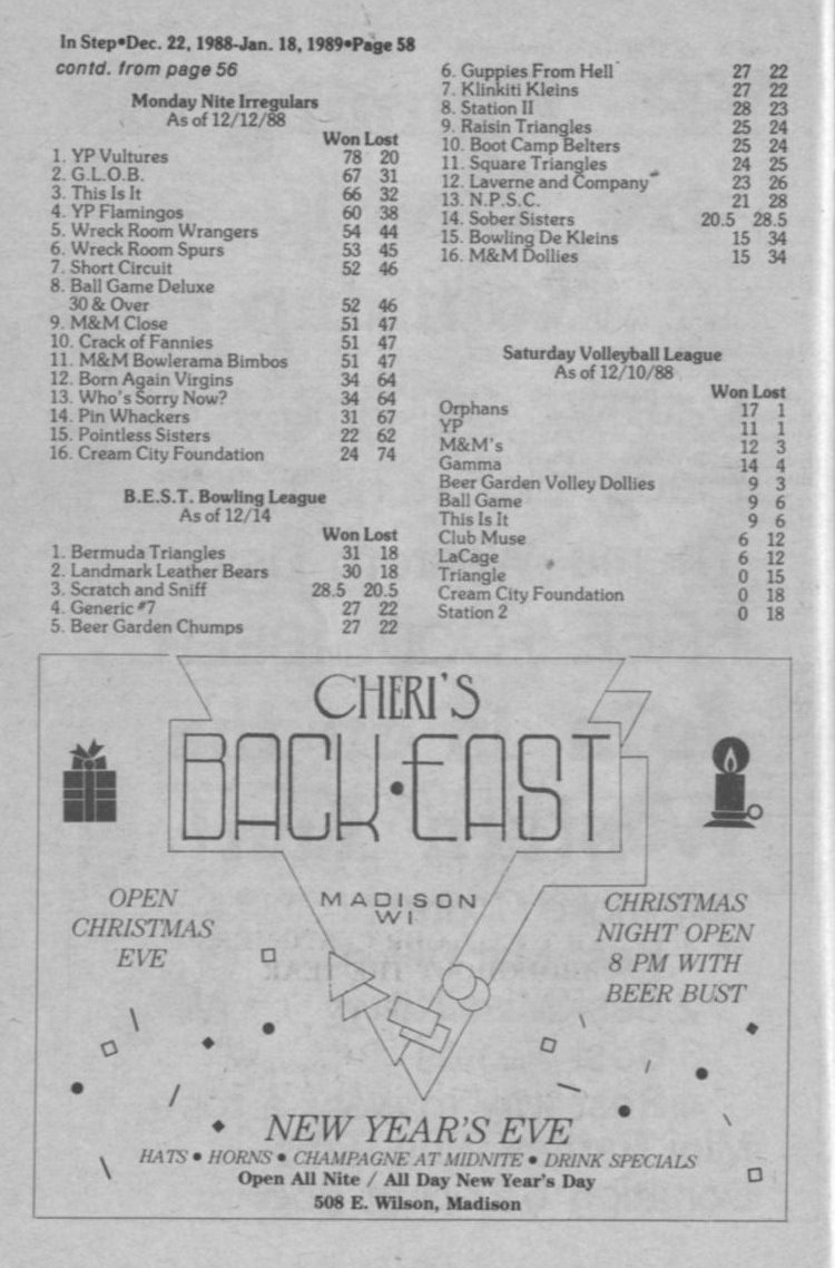 Scores and Standings +Ad: Cheri's Back East