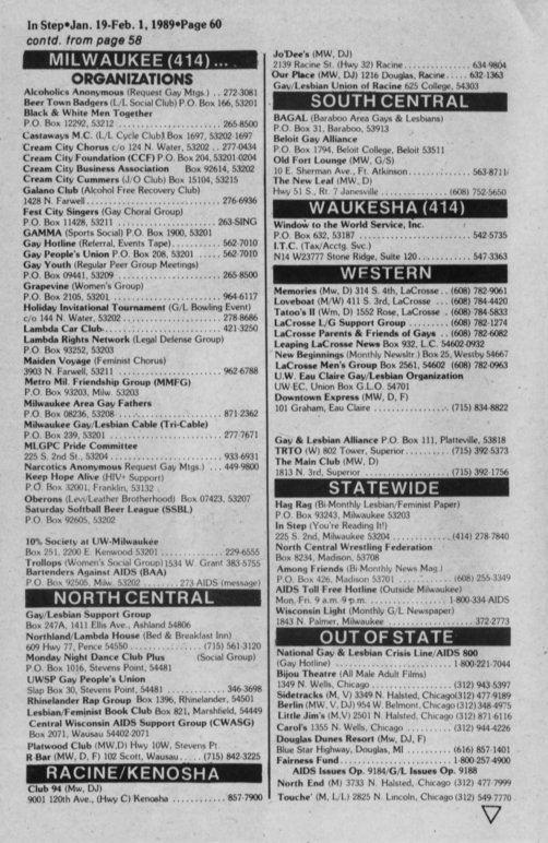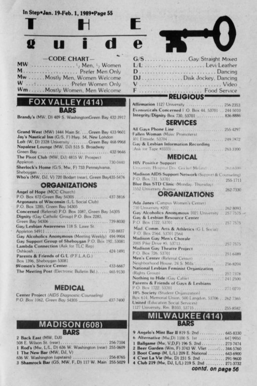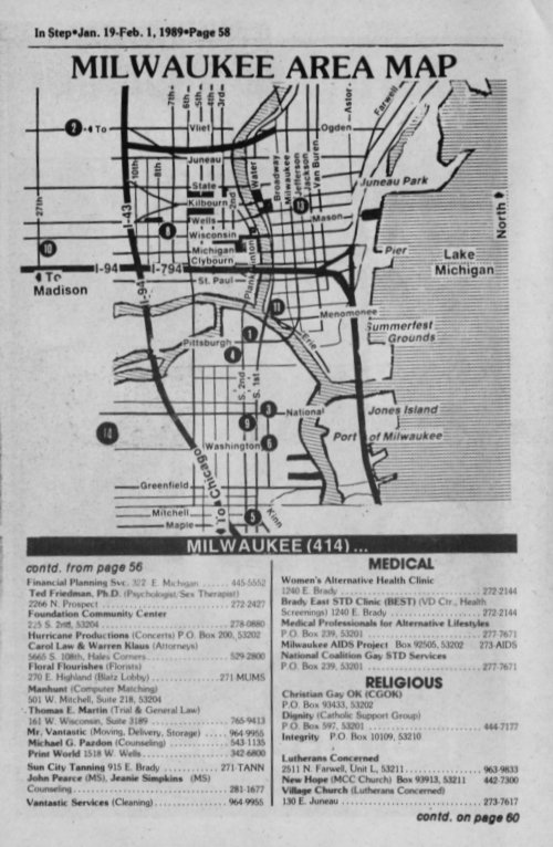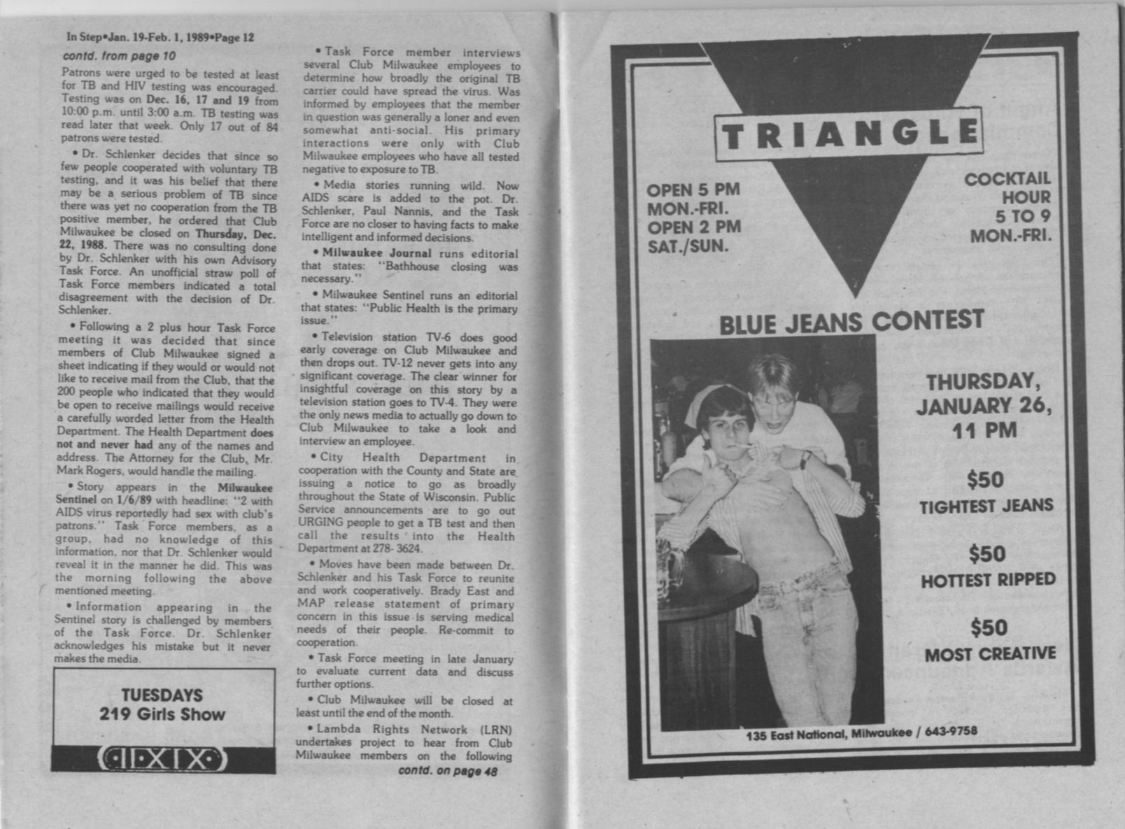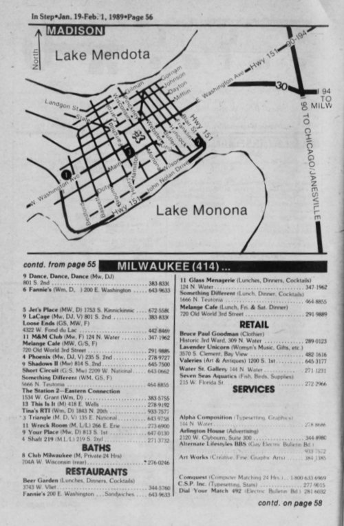 Club Milwaukee (bath house) and hassles with the City of Milwaukee department of health over TB and AIDS. One step involved regular testing of patrons for HIV by Brady East STD Clinic (BESTD Clinic).