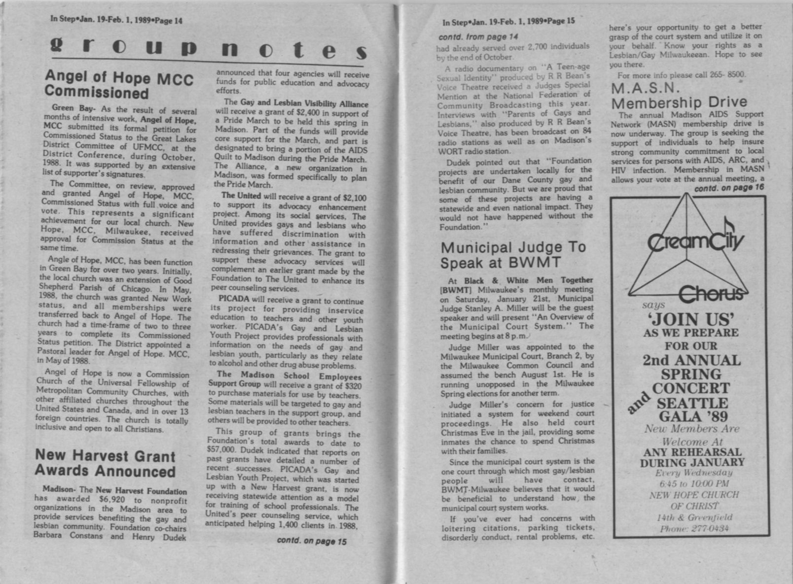 Municipal judge to speak at BWMT (Black & White Men Together) meeting; MASN Membership drive (Madison AIDS Support Network)