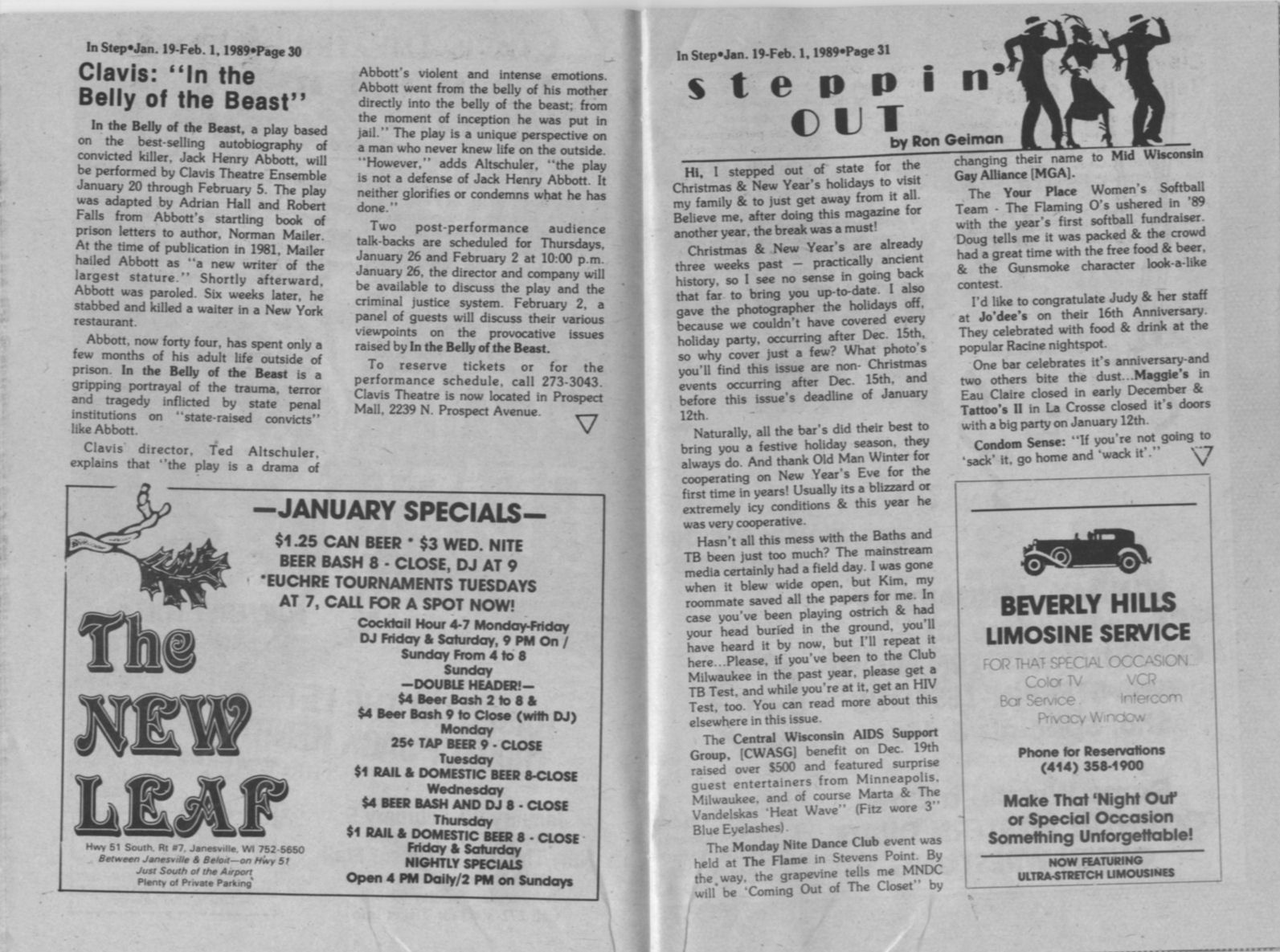 Ad: The New Leaf bar, Janesville
