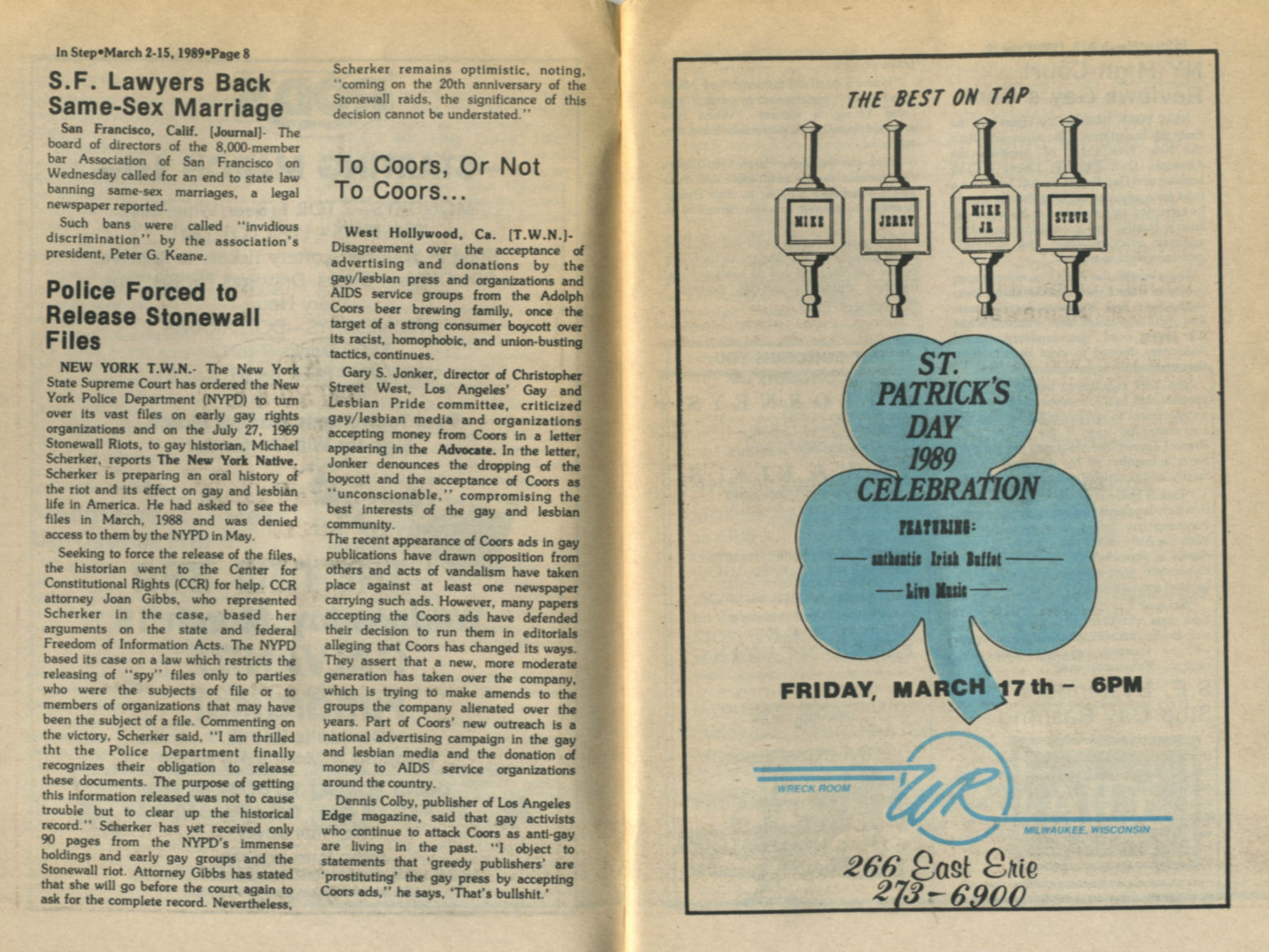 History of Gay and Lesbian Life in Milwaukee, Wisconsin - Print Media - InStep Magazine