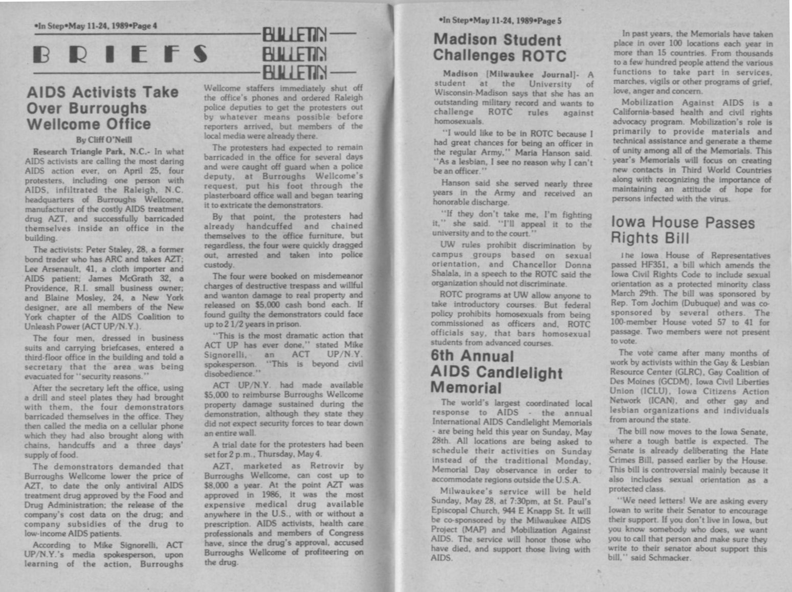 UW Madison female student challenges ROTC rules against homosexuals; 6th annual AIDS candelight memorial
