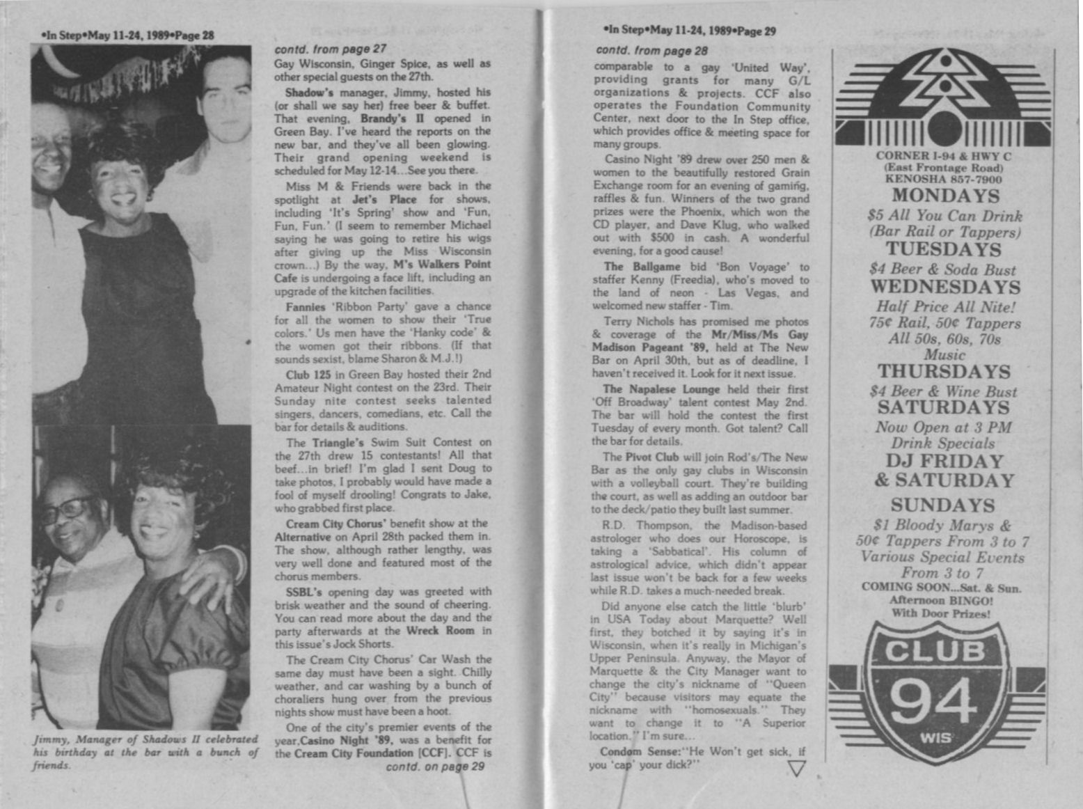 Group Notes: Cream City Foundation/ CCF Interagency forum; Black and White Men Together/ BWMT elects officers + Ad: Loose Ends Western Ho Down birthday party for owner Karen & bartender Dennis