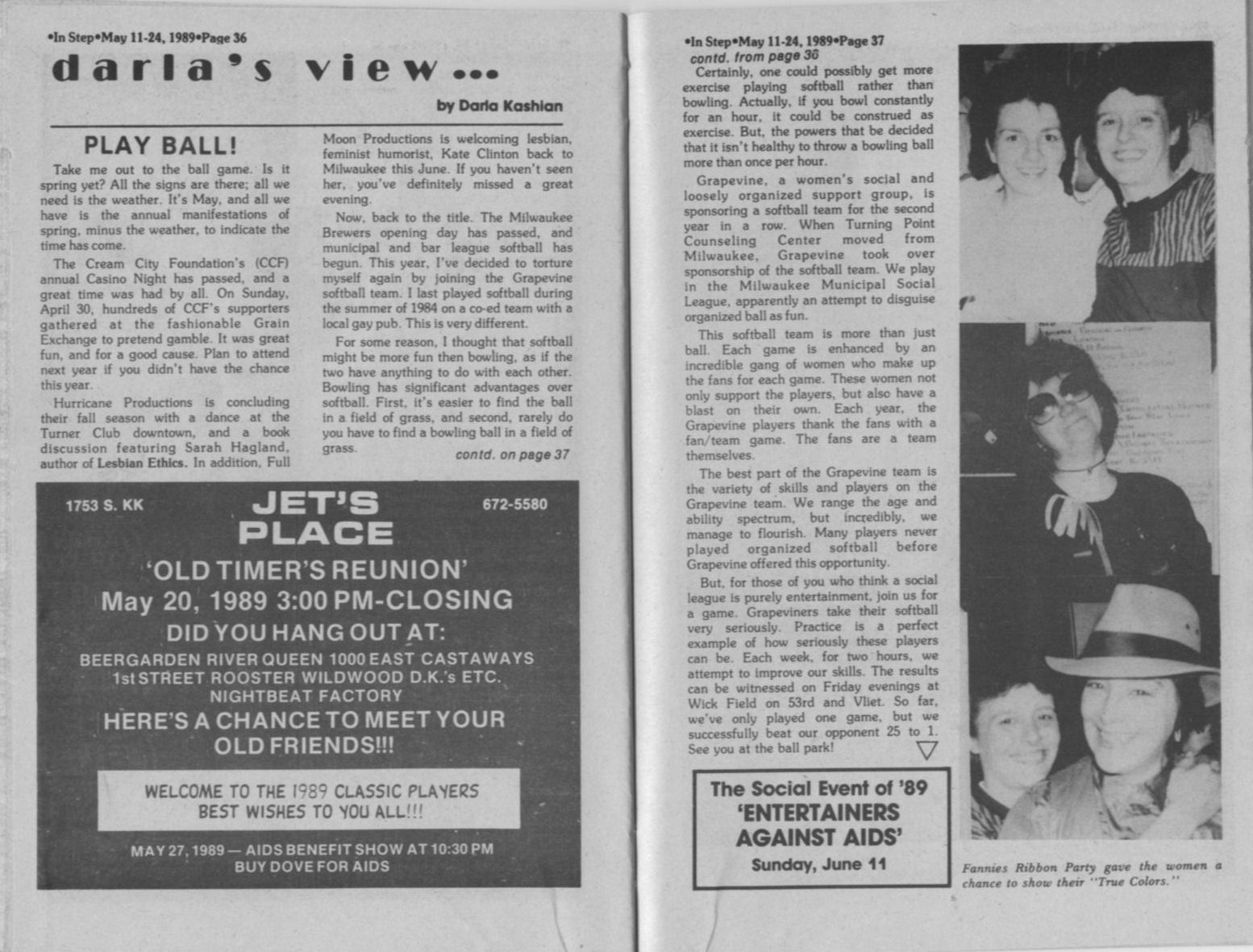 Darla's View, cont, including Grapevine and softball; + Photos: Fannie's Ribbon party