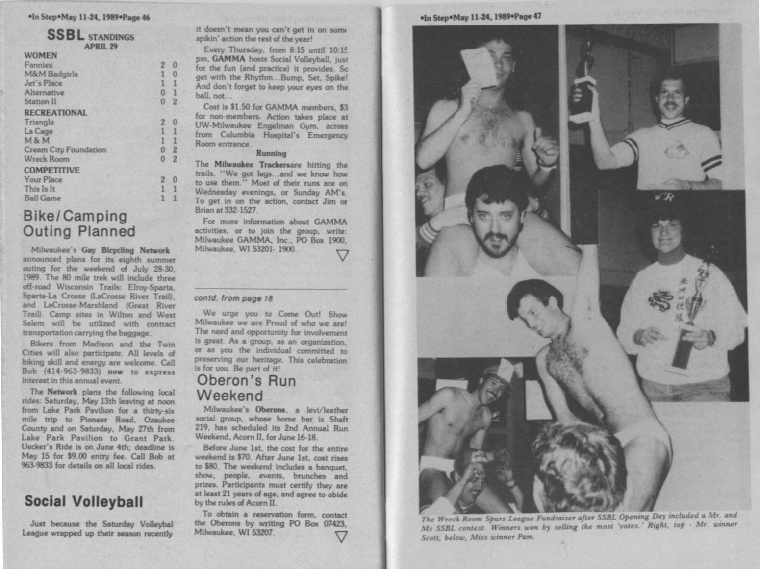Sports: Milwaukee Gay Bicycling Network, GAMMA Social volleyball, Oberons run weekend