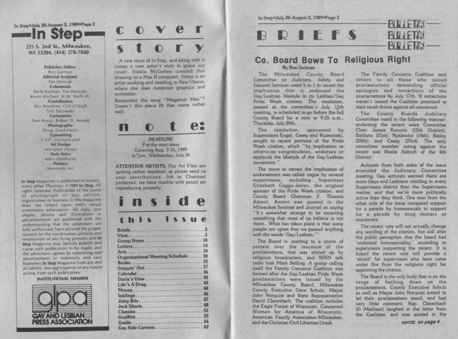 History of Gay and Lesbian Life in Milwaukee, Wisconsin - Print Media - InStep Magazine