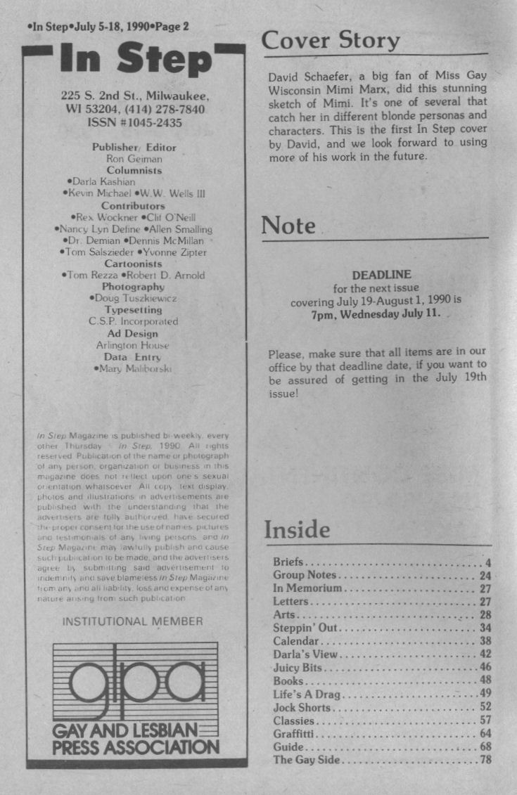 Cover story: sketch of Miss Gay Wisconsin Mimi Marx, by David Schaefer