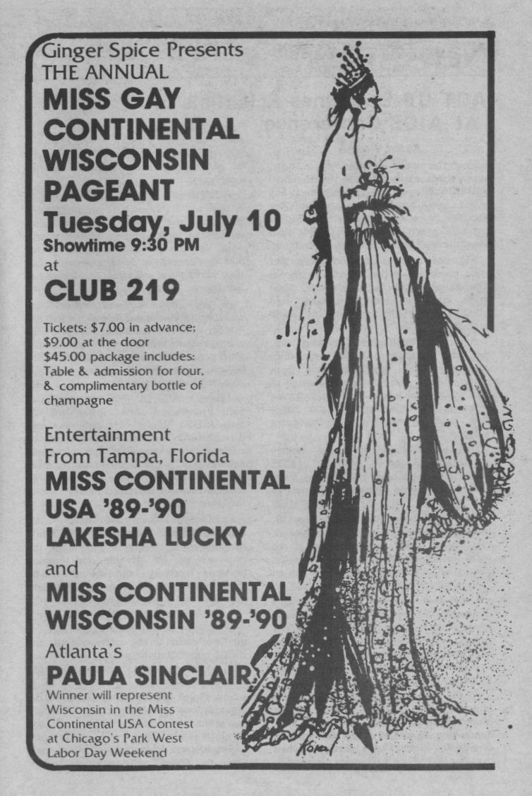 Ad: Ginger Spice presents the Miss Gay Continental Wisconsin Pageant