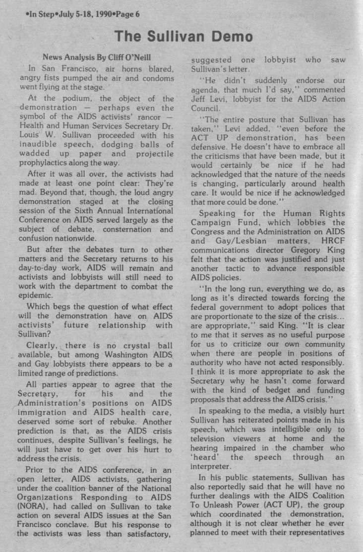 The Sullivan Demo: Secretary of Health and Human Services Dr. Louis W. Sullivan demonstrated against at Sixth Annual International Conference on AIDS