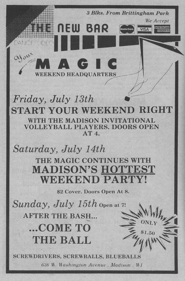 Ad: The New Bar, MAGIC weekend headquarters (Madison's Pride celebration)