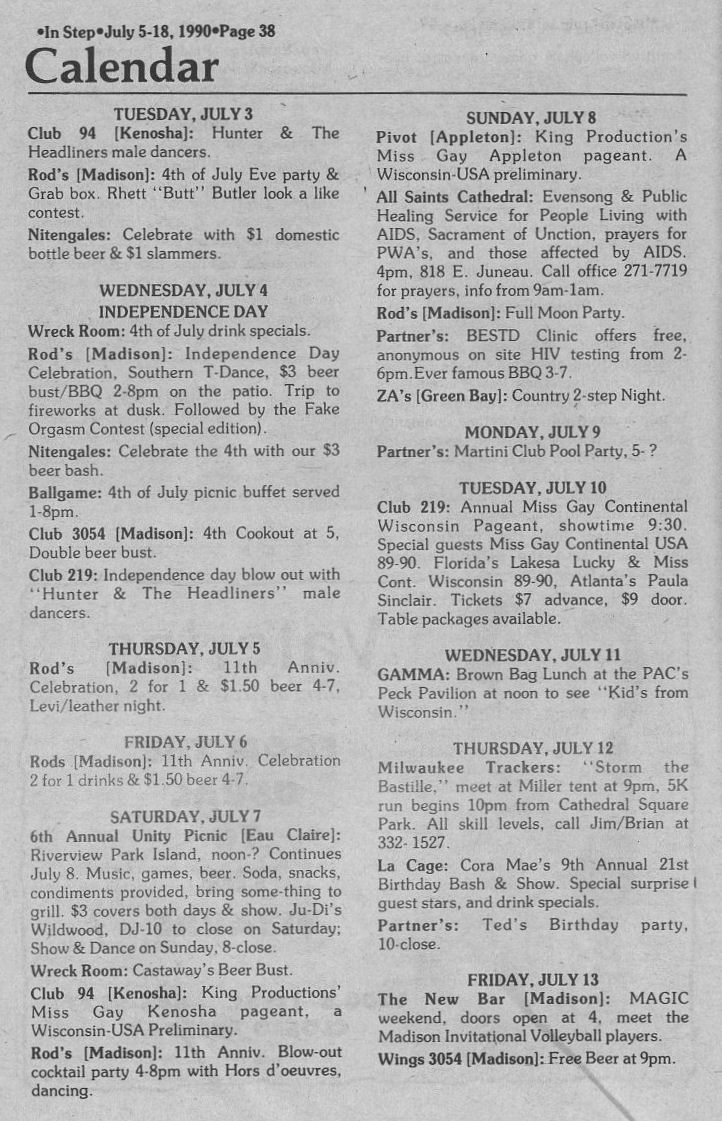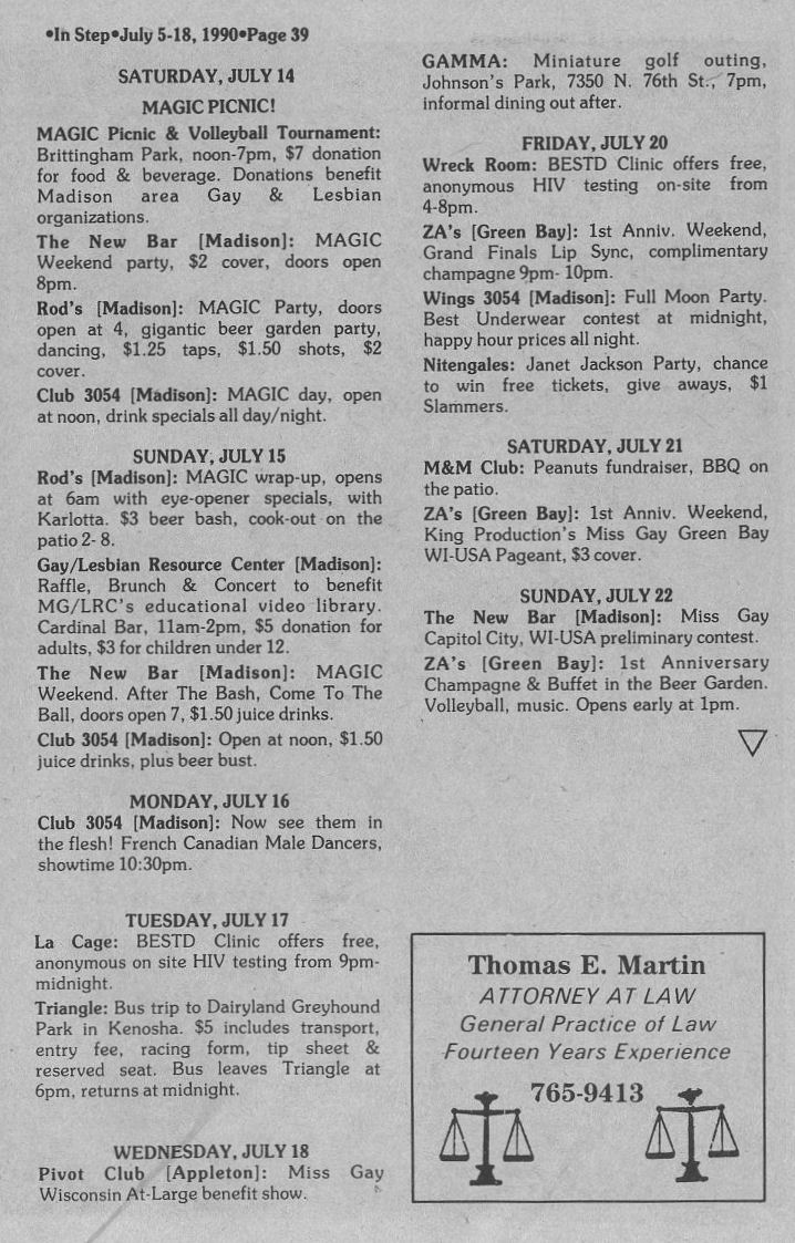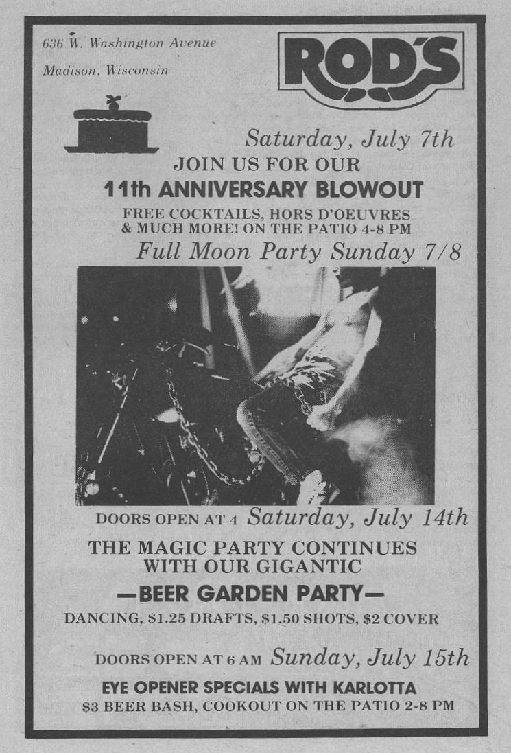 Ad: Rod's 11th anniversary blowout party, and MAGIC party (Madison's pride celebration)