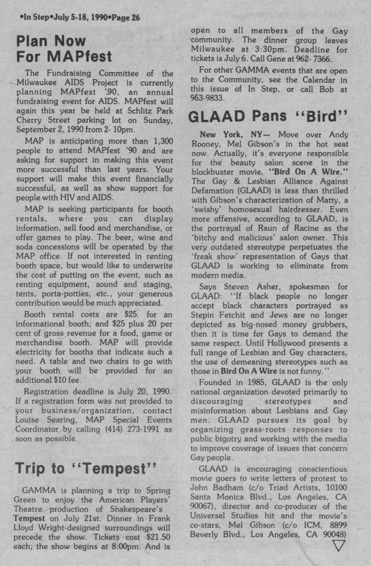 GLAAD (Gay & Lesbian Alliance Against Defamation) upset with film Bird On A Wire