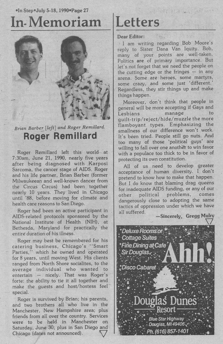 In Memoriam: Roger Remillard, partner of Brian Barber, former Milwaukean and well-known dancer at Circus Circus bar