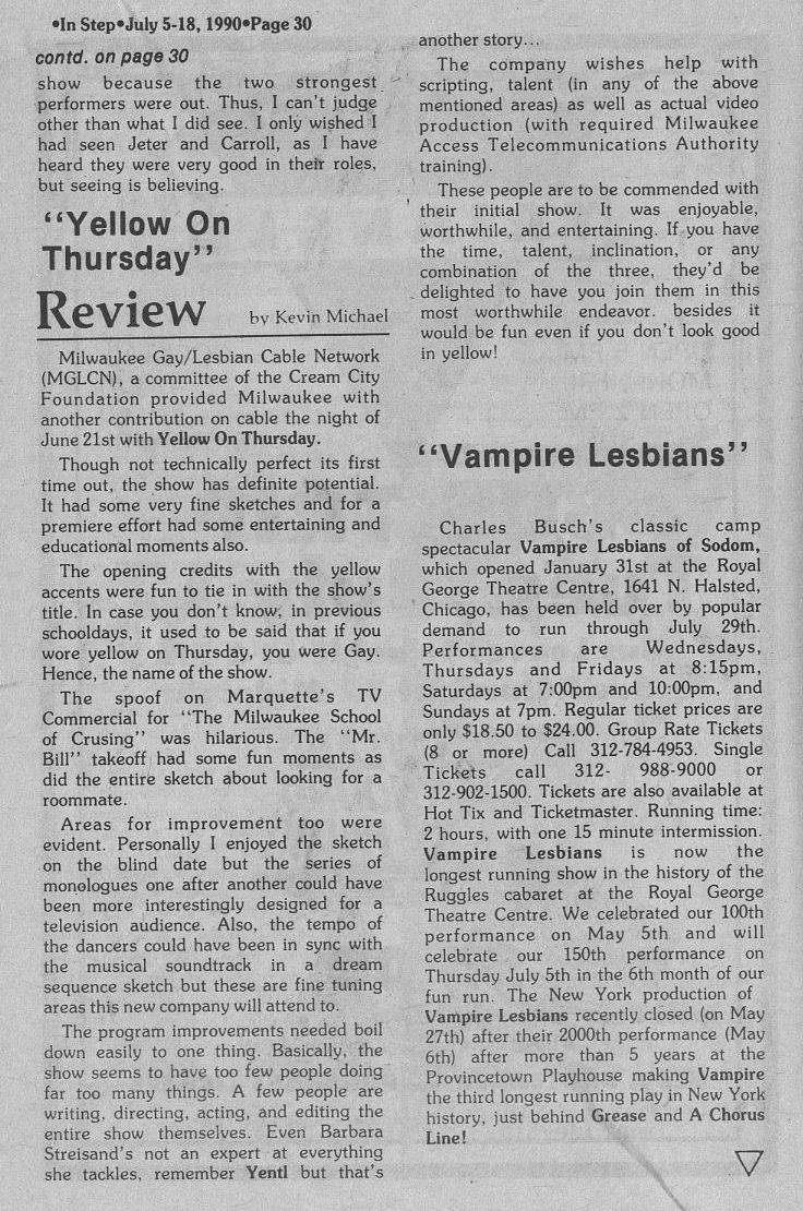Review of Yellow On Thursday, new series on Milwaukee Gay/Lesbian Cable Network