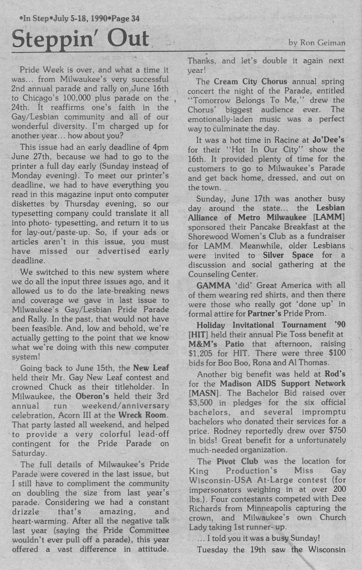 Photos: Partner's Pride Prom 1990 fundraiser for MLGPC/ Milwaukee Lesbian Gay Pride Committee.