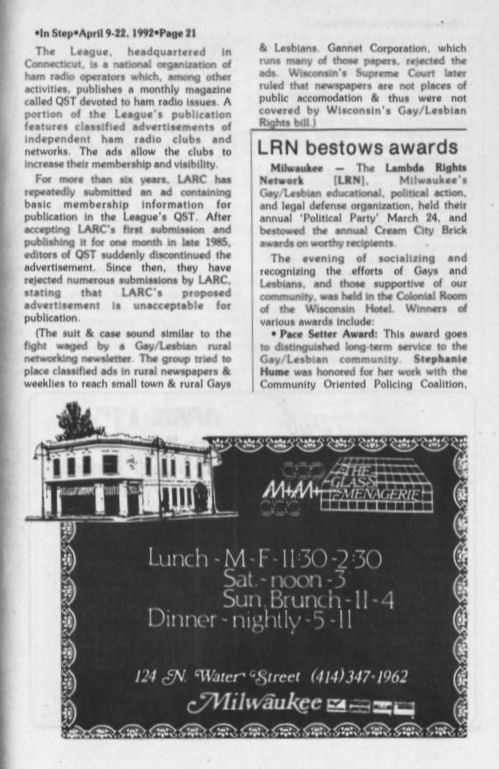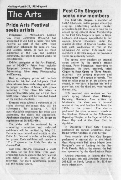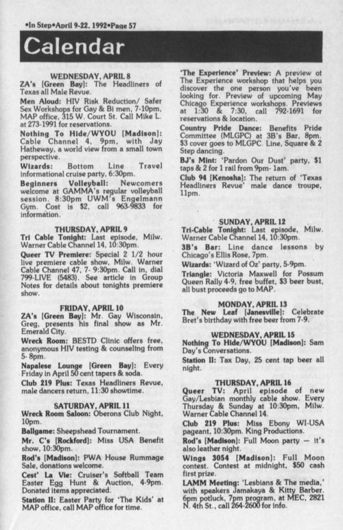 History of Gay and Lesbian Life in Milwaukee, Wisconsin - Print Media - InStep Magazine