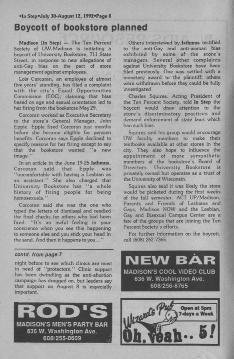 Ten Percent Society in Madison boycotts UW bookstore (page 8)