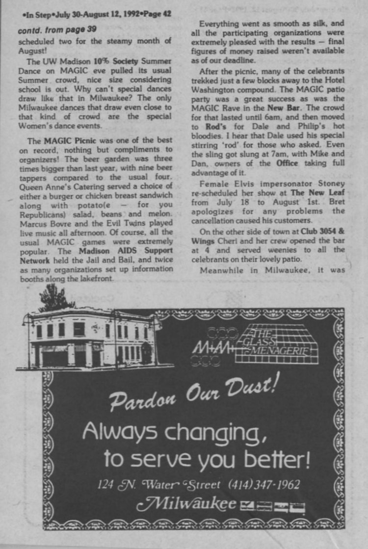 Oberons donate $300 to BESTD Clinic; People of Color/ Club MUSE and BWMT Picnic (page 23)