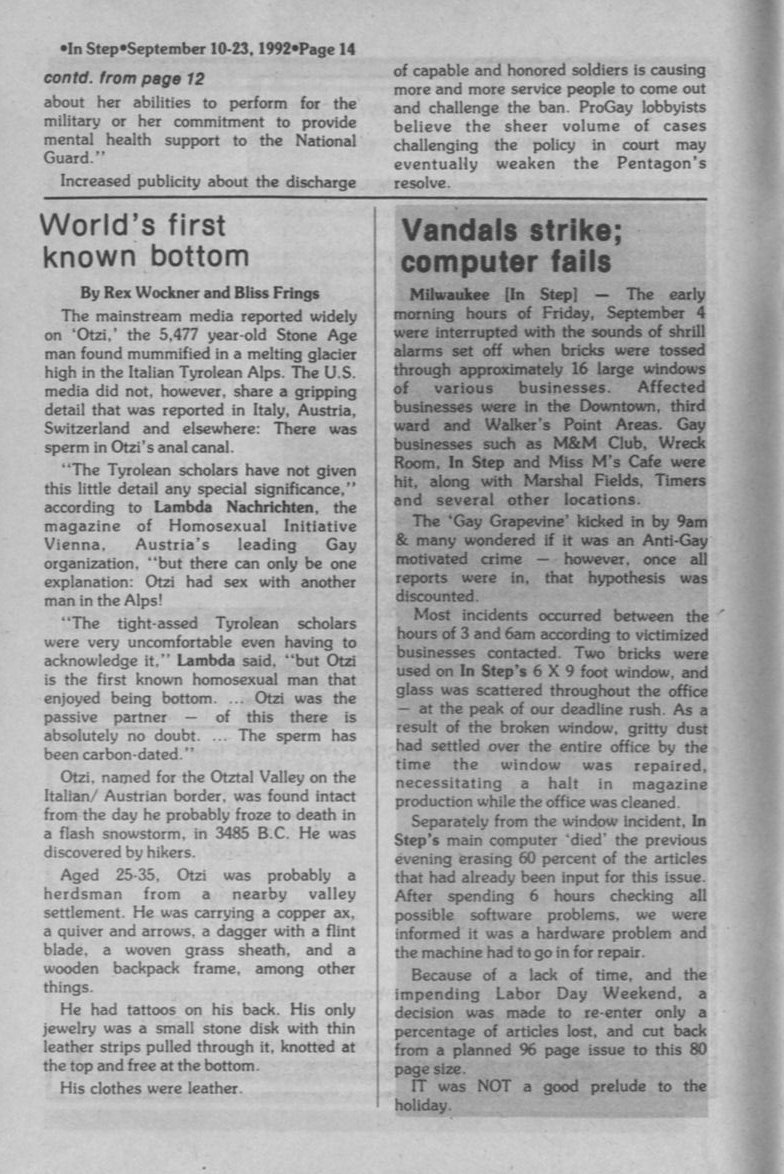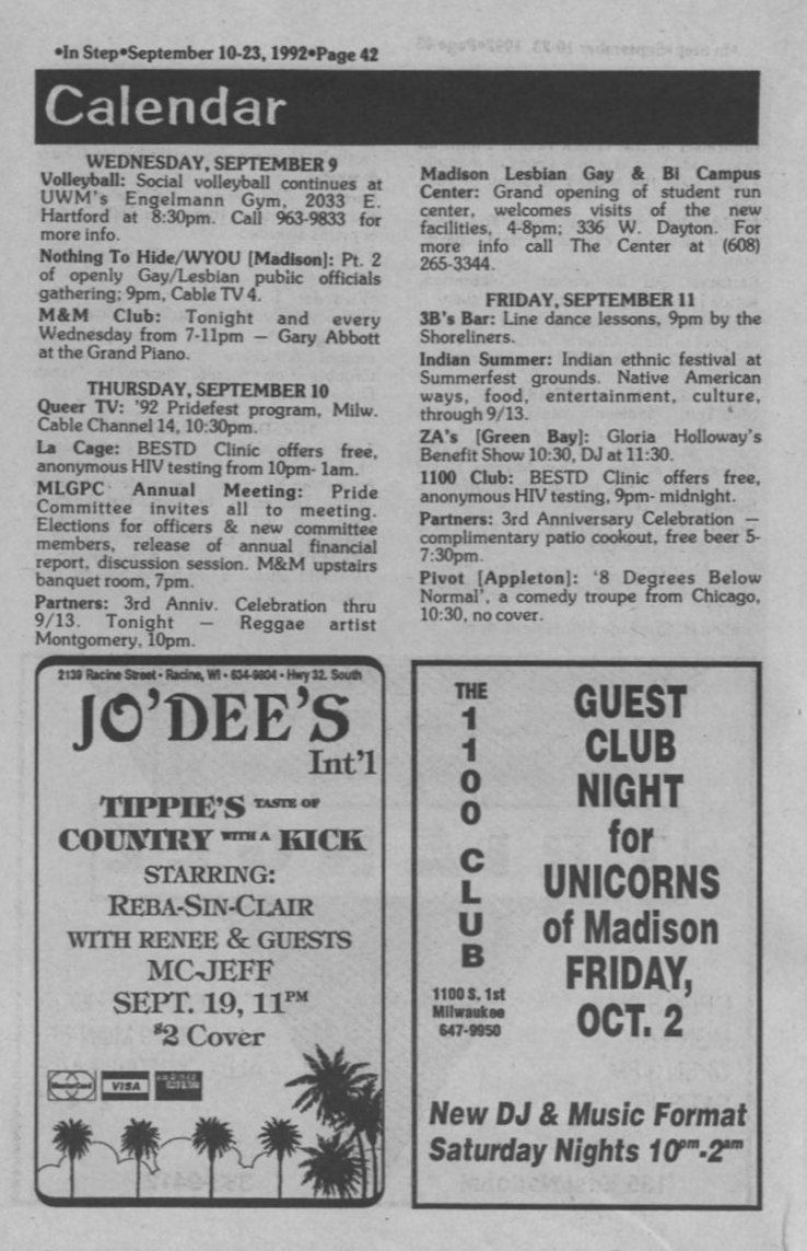 'In The Life' hosted by Kate Clinton on WMVS; Mayor Norquist cuts funding for Pride Parade.