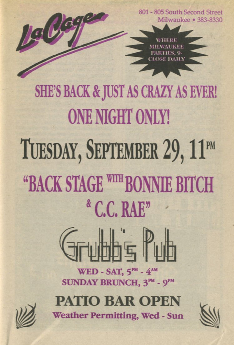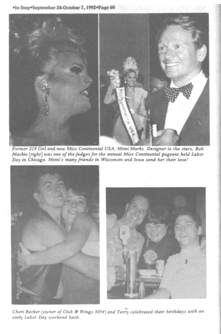Photo: Cheri Becker (owner of Club 3054 and Wings) at Club 3054, with Bob Mackie, Mimi Marks.